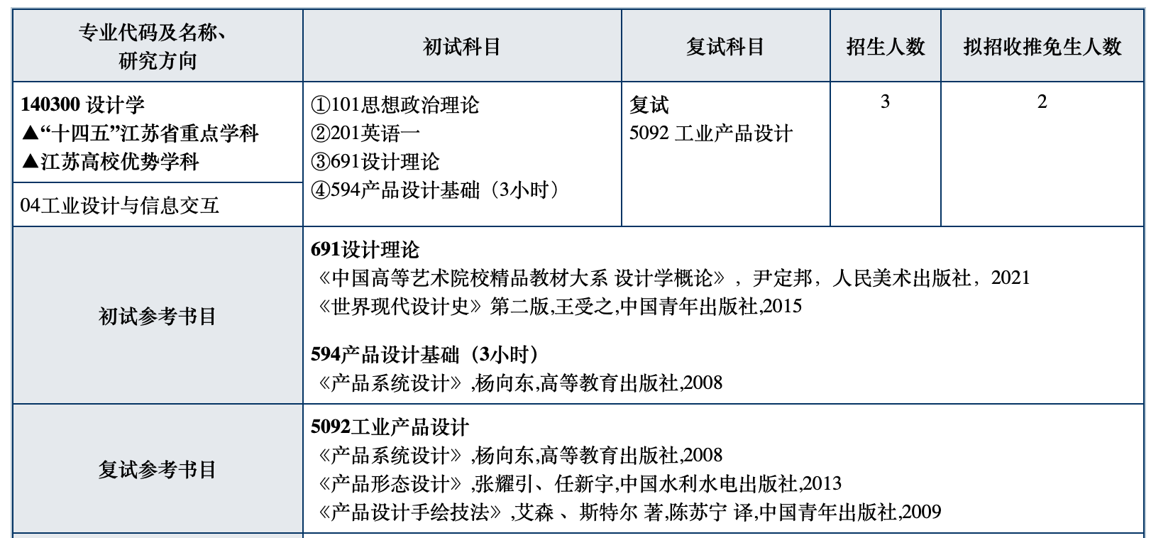 南京林業(yè)大學(xué)家居與工業(yè)設(shè)計(jì)學(xué)院2024年考研招生目錄及參考書(shū)目