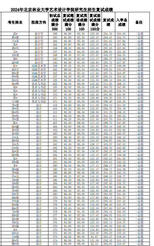 北京林業(yè)大學(xué)藝術(shù)設(shè)計學(xué)院2024年考研復(fù)試結(jié)果公示