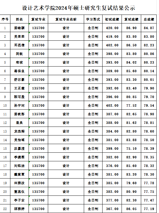 長(zhǎng)沙理工大學(xué)設(shè)計(jì)藝術(shù)學(xué)院2024年考研復(fù)試錄取結(jié)果