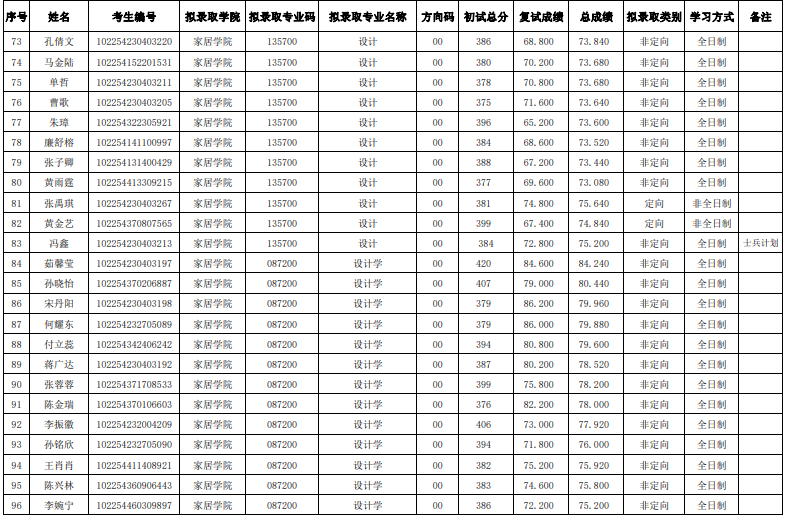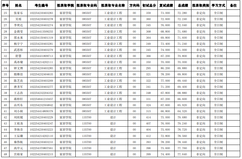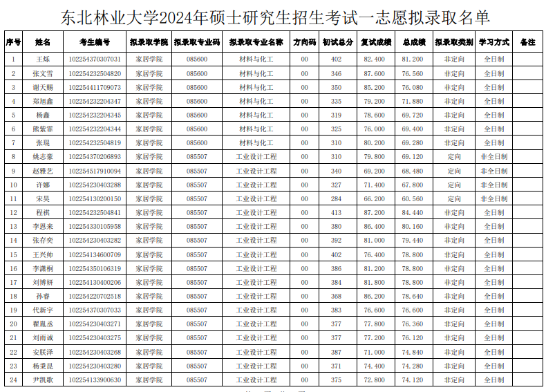 東北林業(yè)大學(xué)家居與藝術(shù)設(shè)計學(xué)院2024年考研復(fù)試錄取名單(一志愿)