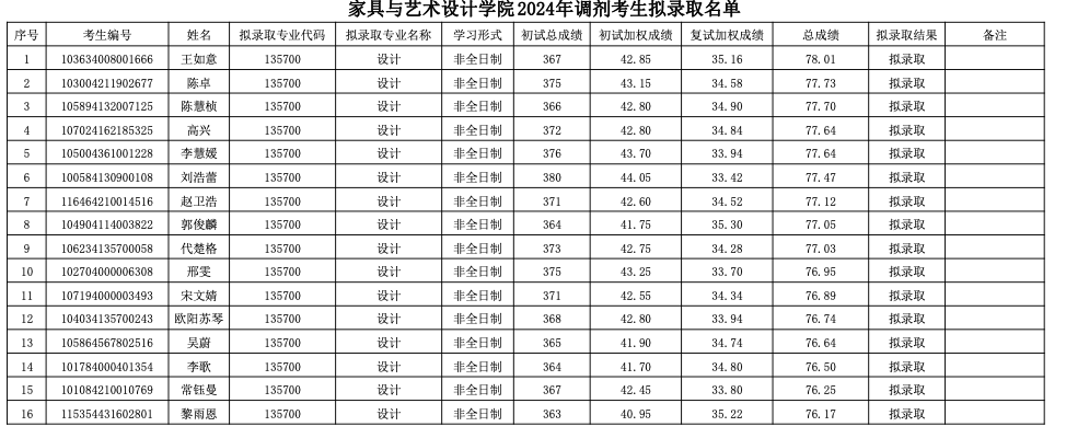 中南林業(yè)科技大學家居與藝術(shù)設計學院2024年考研錄取名單 發(fā)布時間:2024-04-11 中南林業(yè)科技大學家居與藝術(shù)設計學院2024年考研錄取名單 上一篇:中南林業(yè)科技大學家具與藝術(shù)設計學院2024年考研復試名單公布 下一篇:中南林業(yè)科技大學家居與藝術(shù)設計學院2025年考研招生目錄及招生人數(shù)
