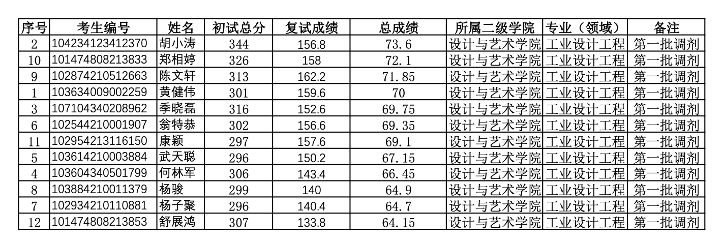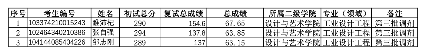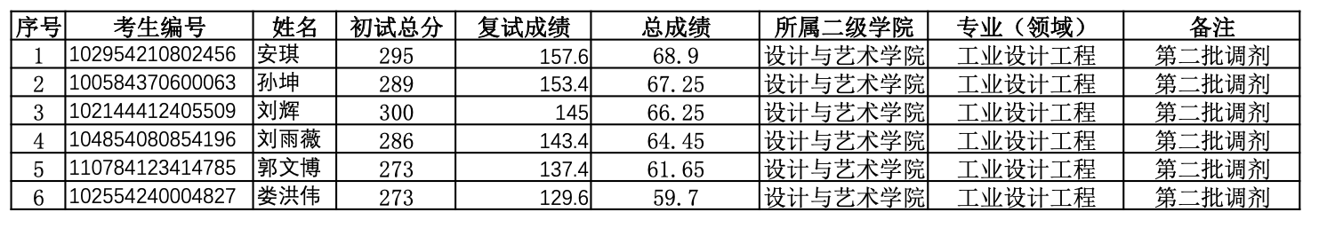 上海電機(jī)學(xué)院工業(yè)設(shè)計(jì)工程考研2024年考研錄取名單(全部調(diào)劑)