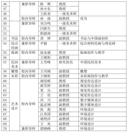 首都師范大學(xué)美術(shù)學(xué)院2025年碩士研究生導(dǎo)師及招生專業(yè)一覽表 發(fā)布時(shí)間:2024-09-23 首都師范大學(xué)美術(shù)學(xué)院2025年碩士研究生導(dǎo)師及招生專業(yè)一覽表 上一篇:首都師范大學(xué)美術(shù)學(xué)院2025年保研招生工作辦法 下一篇:首都師范大學(xué)美術(shù)學(xué)院 2025年免試攻讀碩士研究生復(fù)試名單