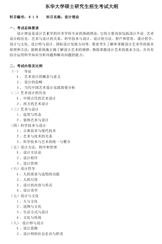 東華大學(xué)服裝與藝術(shù)設(shè)計(jì)學(xué)院2025年考研考試大綱:619設(shè)計(jì)理論
