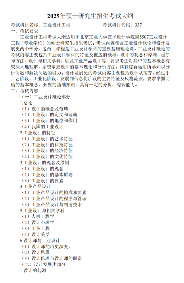 北京工業(yè)大學(xué)藝術(shù)設(shè)計學(xué)院2025年考研考試大綱季參考書目:337工業(yè)設(shè)計工程