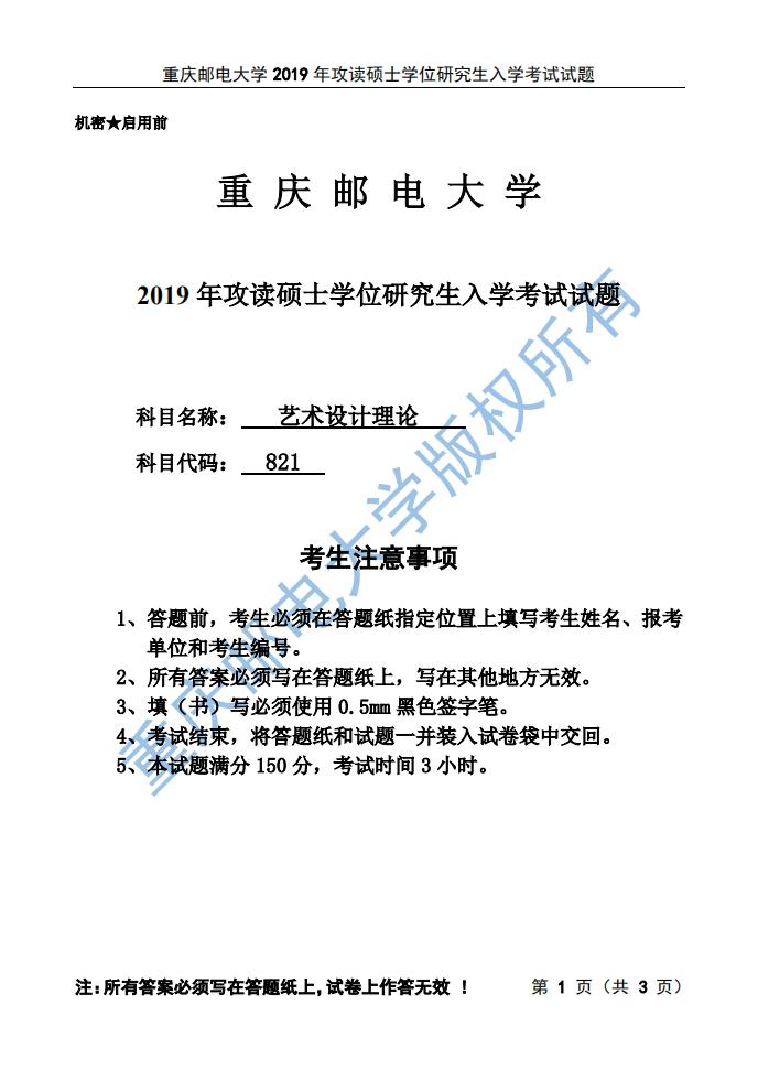 重慶郵電大學傳媒藝術學院2019年考研真題—821藝術設計理論 發(fā)布時間:2019-09-01 重慶郵電大學傳媒藝術學院2019年考研真題—821藝術設計理論 上一篇:重慶郵電大學傳媒藝術學院2019年考研真題—613藝術綜合 下一篇:重慶郵電大學2020年考研復試分數(shù)線公告