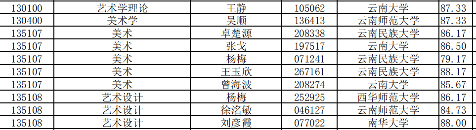 云南大學(xué)藝術(shù)與設(shè)計(jì)學(xué)院2020年碩士研究生推免生錄取名單公示