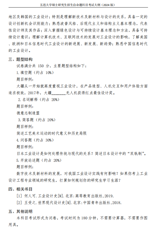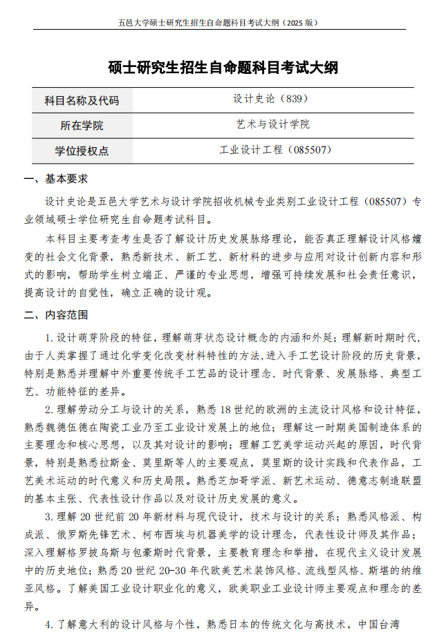 五邑大學(xué)藝術(shù)與設(shè)計(jì)學(xué)院2025年工業(yè)設(shè)計(jì)工程考研考試大綱:839設(shè)計(jì)史論