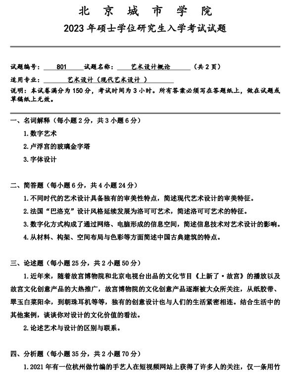 下一篇:北京城市學(xué)院藝術(shù)設(shè)計(jì)學(xué)部2024年設(shè)計(jì)考研真題:801藝術(shù)設(shè)計(jì)概論