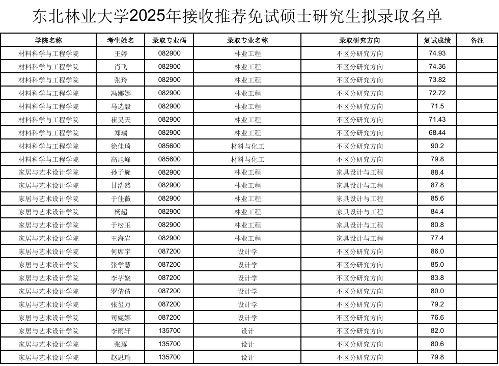 東北林業(yè)大學(xué)家居與工業(yè)設(shè)計(jì)學(xué)院2025年保研擬錄取名單