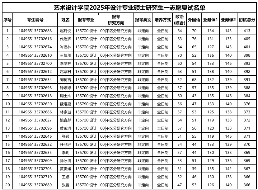 武漢輕工大學(xué)藝術(shù)設(shè)計學(xué)院2025年考研復(fù)試名單 發(fā)布時間:2025-03-14 上一篇:武漢輕工大學(xué)藝術(shù)設(shè)計學(xué)院2025年考研復(fù)試分數(shù)線及招生人數(shù) 下一篇:武漢輕工大學(xué)藝術(shù)設(shè)計學(xué)院2025年考研擬錄取名單