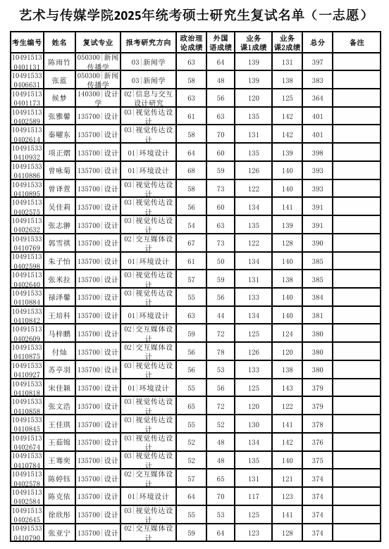 中國(guó)地質(zhì)大學(xué)藝術(shù)與傳媒學(xué)院2025年考研復(fù)試名單