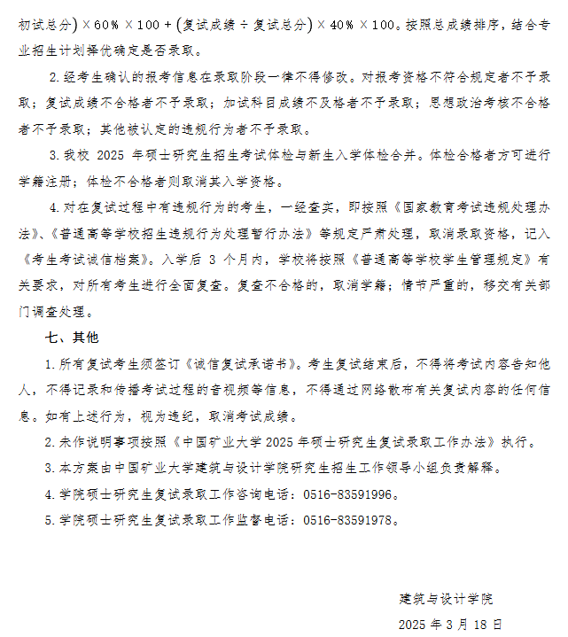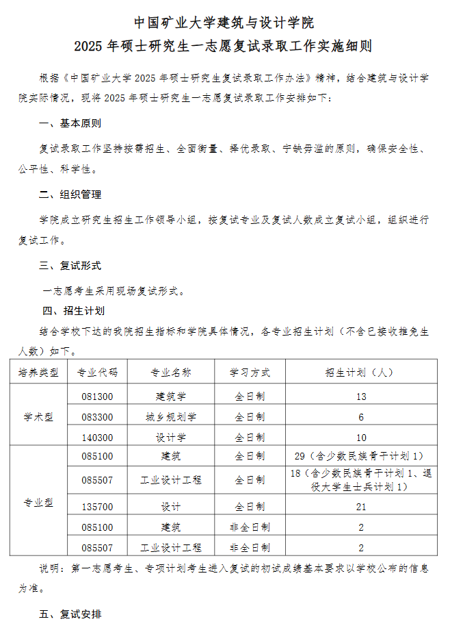 中國(guó)礦業(yè)大學(xué)建筑與設(shè)計(jì)學(xué)院2025年考研一志愿復(fù)試錄取工作實(shí)施細(xì)則