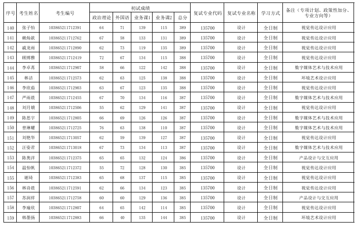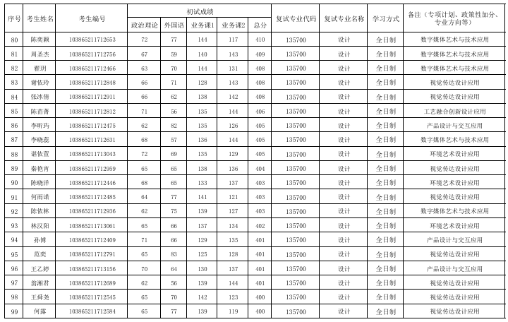 福州大學(xué)廈門(mén)工藝美術(shù)學(xué)院2025年考研復(fù)試名單 發(fā)布時(shí)間:2025-03-27 福州大學(xué)廈門(mén)工藝美術(shù)學(xué)院2025年考研復(fù)試名單 上一篇:福州大學(xué)廈門(mén)工藝美術(shù)學(xué)院2025年考研復(fù)試分?jǐn)?shù)線及招生人數(shù) 下一篇:沒(méi)有了