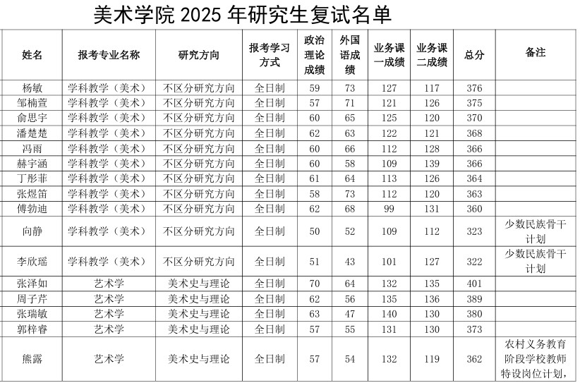 華中師范大學(xué)美術(shù)學(xué)院2025年考研復(fù)試名單 發(fā)布時間:2025-03-23 華中師范大學(xué)美術(shù)學(xué)院2025年考研復(fù)試名單 上一篇:華中師范大學(xué)美術(shù)學(xué)院2025年考研復(fù)試分數(shù)線及招生人數(shù) 下一篇:沒有了