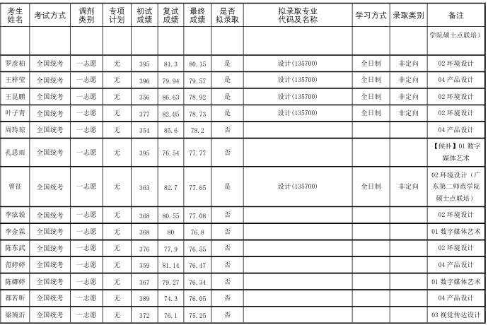 華南師范大學(xué)美術(shù)學(xué)院2025年設(shè)計考研擬錄取名單 發(fā)布時間:2025-04-08 華南師范大學(xué)美術(shù)學(xué)院2025年設(shè)計考研擬錄取名單 上一篇:華南師范大學(xué)美術(shù)學(xué)院2025年考研復(fù)試分?jǐn)?shù)線發(fā)布 下一篇:華南師范大學(xué)美術(shù)學(xué)院2026年設(shè)計考研招生目錄