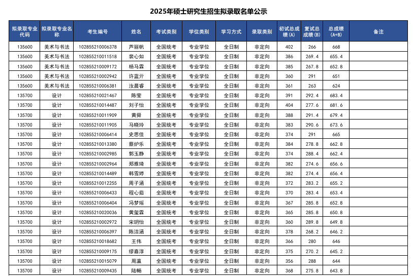 蘇州大學(xué)藝術(shù)學(xué)院2025年碩士研究生擬錄取名單公示 發(fā)布時(shí)間:2025-04-03 蘇州大學(xué)藝術(shù)學(xué)院2025年碩士研究生擬錄取名單公示 上一篇:蘇州大學(xué)藝術(shù)學(xué)院2025年考研復(fù)試名單 下一篇:蘇州大學(xué)藝術(shù)學(xué)院2025年全日制博士學(xué)位研究生擬錄取名單公示