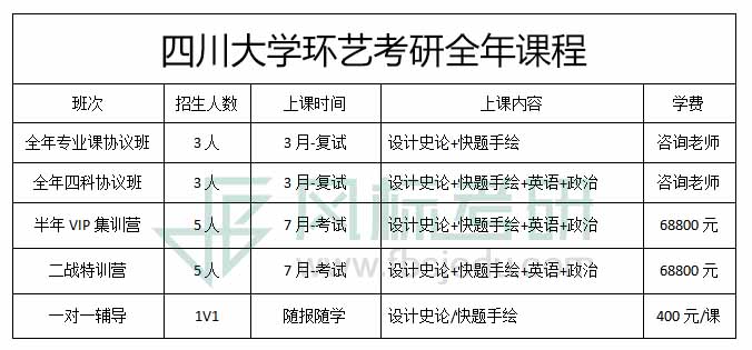 四川大學(xué)2021年環(huán)境藝術(shù)設(shè)計(jì)考研全年課程 發(fā)布時(shí)間:2020-03-12 報(bào)名咨詢電話&微信:15810532515報(bào)名咨詢QQ:2664622930報(bào)名咨詢郵箱:vane360@126.com四川大學(xué)2021年環(huán)藝考研全年課程 上一篇:四川大學(xué)藝術(shù)學(xué)院2019年考研招生擬錄取名單公示 下一篇:四川大學(xué)2020年考研復(fù)試線公布
