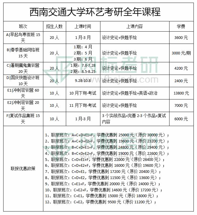 西南交通大學(xué)2021年環(huán)境藝術(shù)設(shè)計考研全年課程 發(fā)布時間:2020-03-12 報名咨詢電話&微信:15810532515報名咨詢QQ:2664622930報名咨詢郵箱:vane360@126.com西南交通大學(xué)2021年環(huán)境藝術(shù)設(shè)計考研全年課程 上一篇:西南交通大學(xué)2020年考研初試成績查詢及復(fù)試工作安排說明 下一篇:2020年全國碩士研究生招生考試考生進(jìn)入復(fù)試的初試成績基本要求